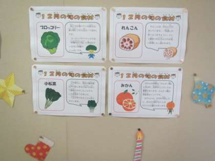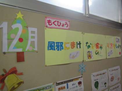 事務室前の廊下に、12月の給食目標が掲出されました。