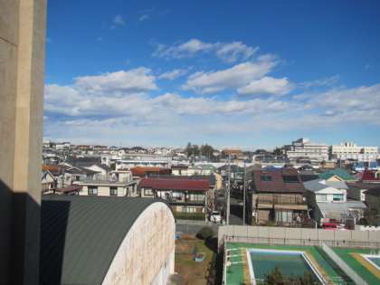 写真上:4階から気持ちのいい青空と雲が見えていました。