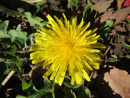 中:校庭の北側(水色門付近)では、タンポポが冷たい風を避けるにように、そしておひさまの光をたくさん受けられるようにロゼット状になってしっかりと咲いていました。