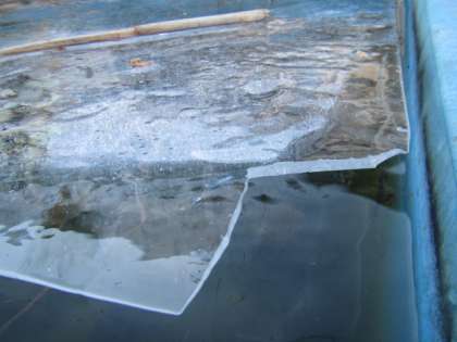 でも、この日はそれほど寒さが厳しくなかったからか、氷の厚さは冬休みの時より薄かったです。