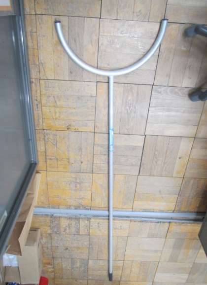 不審者が侵入したという知らせを受け、さす股(写真下)をもって西昇降口(今回の想定場所)に駆けつけた校長の平田です。