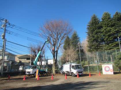 1月17日(金)午前中、校庭の南西にある欅(ケヤキ)の木の、強剪定が行われました。