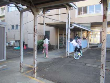 毎日、特化した遊びをしているので、一輪車は当然上手になります。