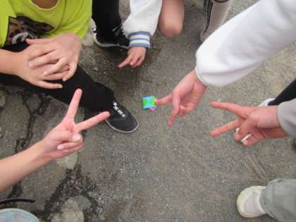 写真上:「撮って撮って」とリクエストがありましたが、あまり顔がはっきり映るのは心配なので、じゃんけんの手だけ撮らせてもらいました。