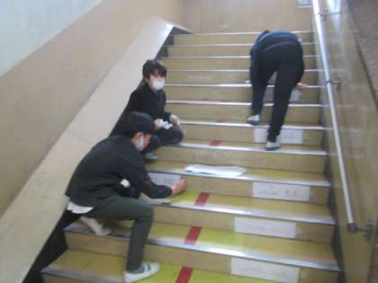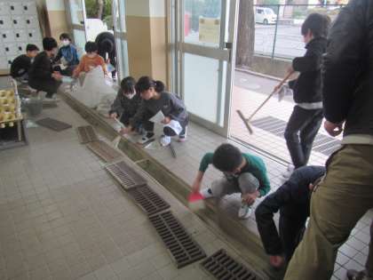 昇降口の掃除や階段の掃除(掲示物の撤去)などを行ってくれました。