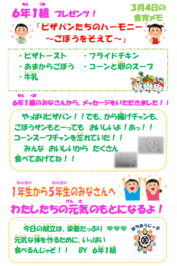 〜6年1組プレゼンツ献立〜
