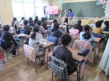 4年1組での保護者Kさんによる読み聞かせの様子。