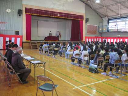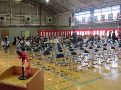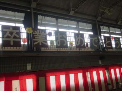 紅白幕も、「卒業おめでとう」のメッセージボードも設置され、卒業式の雰囲気を盛り上げてくれています。(写真上)