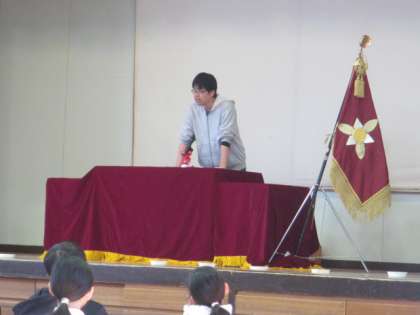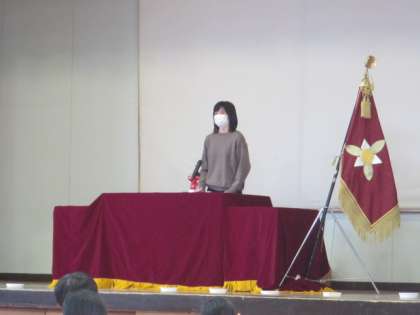 教育委員会告示の場面で、旧担任の先生方から卒業生にはなむけの言葉が送られました。
