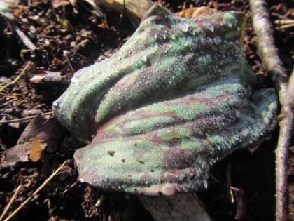 写真中:今年のカタクリはまだ葉っぱだけでした。(2025年3月20日撮影)