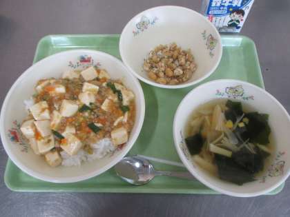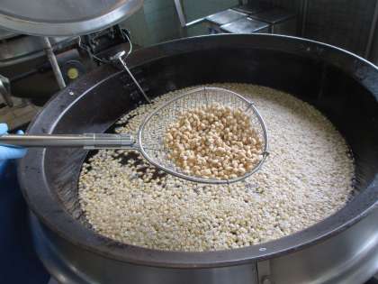今日の給食では、大豆を揚げて「ポップビーンズ」を作りました。