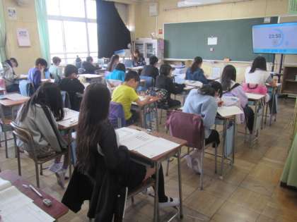 注意書きを全部ひらがなで書いたり(国語の漢字テストもあるので)、タイマーをモニターに映し出したり、先生方も工夫して取り組んでいました。