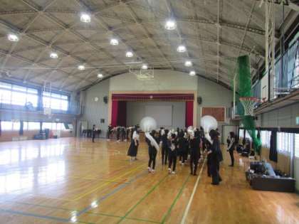 椚田中の吹奏楽部「KWO」(※)が椚田小の体育館で練習を開始しました。