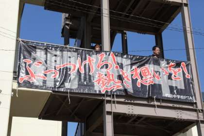 6月3日(土)、市制100周年記念、椚田中学校第40回体育祭のいよいよ開幕です。抜けるような青空の下、校庭に笑顔で集ってくる生徒の表情からは、感動の予感があふれているようです。