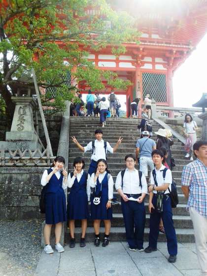 【上段】2組5班、清水寺仁王門前。