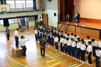 1年生、しっかり顔が上がっています。常に話は真剣に聞いています。