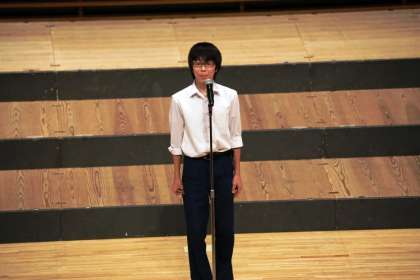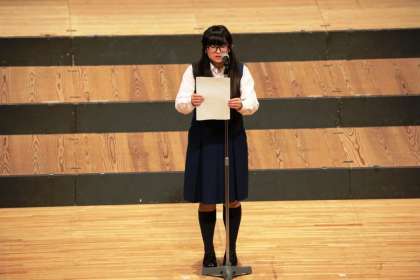 【中段】開会の言葉。音楽祭実行委員長 3年2組 河内 朝陽 くん