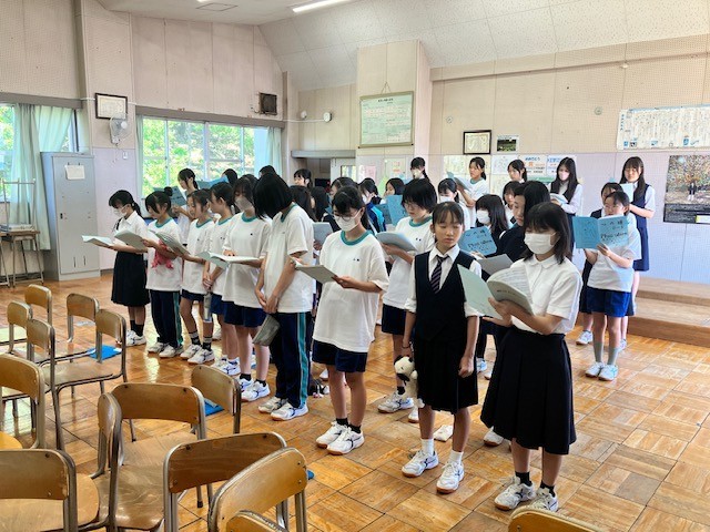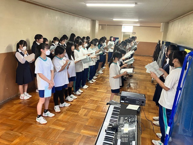 定期考査の終わった直後に体育館に集合して、合唱祭に向けた結団式が行われました。