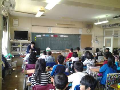 小中一貫教育 出前授業です。清水小6年生に甲ノ原中学から国語、数学、英語の教員が出かけました。