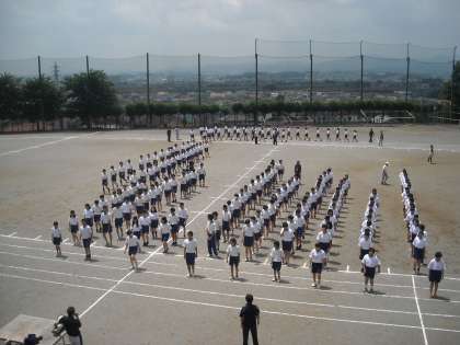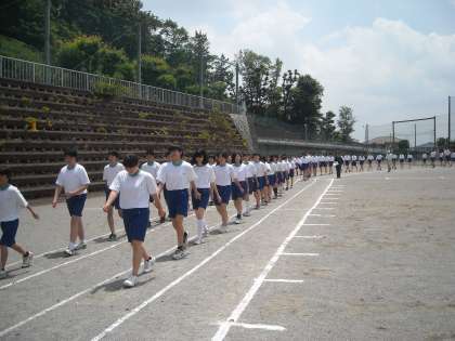 体育祭全校練習の様子です。集合、入場行進、整列の練習です。