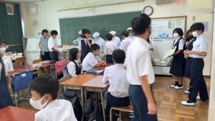 2年生 配膳中です。