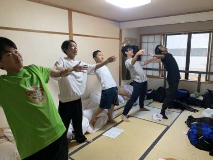 元気な班はラジオ体操もやってました。
