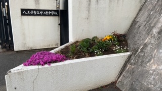 校庭の植物 越冬し 咲き始めました。