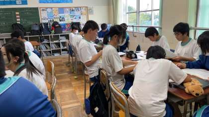 3年生 修学旅行しおり 読み合わせ中です。自宅に一度持ち帰るとのことです。