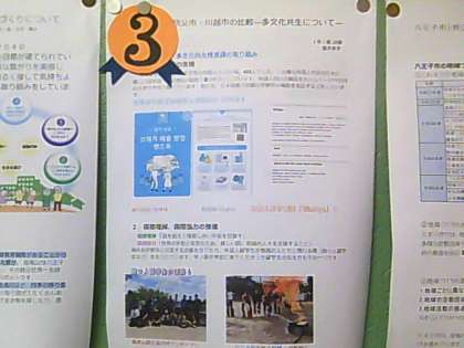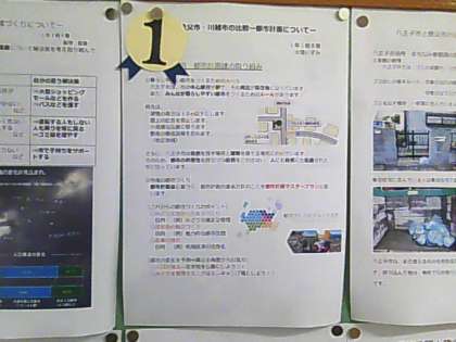 1年生廊下 夏休みのレポート発表