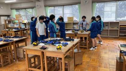 3年生車椅子、アイマスク体験中です。