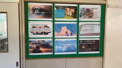 11月25日月曜日 学校公開日、道徳授業地区公開日です。ご参観いただけると幸いです。2年生教室廊下の生徒作品もぜひご覧ください。