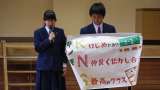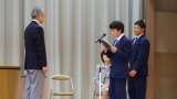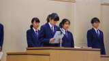 4月27日(金)離任式が行われました。出席された先生方に、代表生徒から言葉と花束...