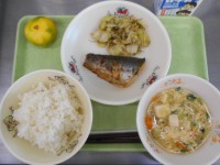 -献立-ごはんさごちのごまみそ焼きじゃこキャベツかきたま汁みかん牛乳さごちのごま...