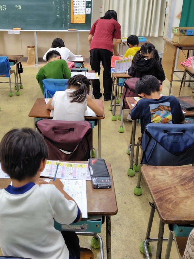 (漢字ドリル2ページ分を練習しています。丁寧に書きましょうね)