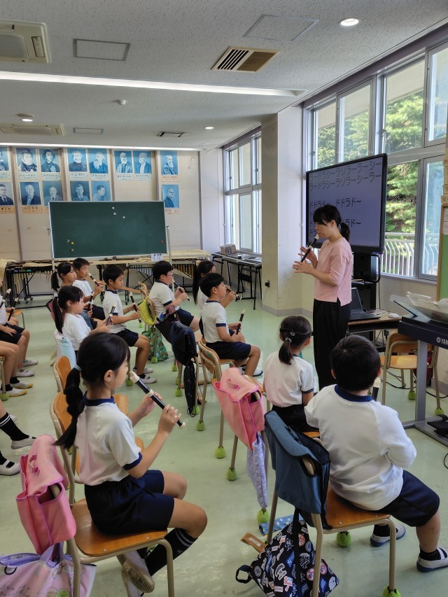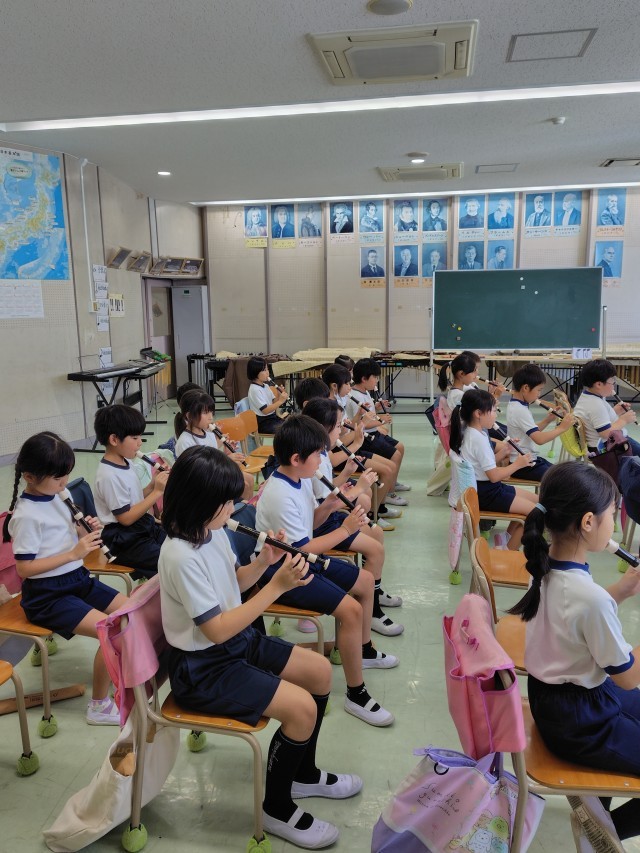 リコーダーの優しい音色が響いています。「リコーダーのひびきを感じとろう」の学習です。息の使い方に気をつけて、歌うように吹きます。