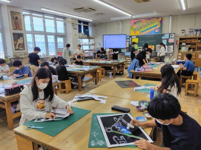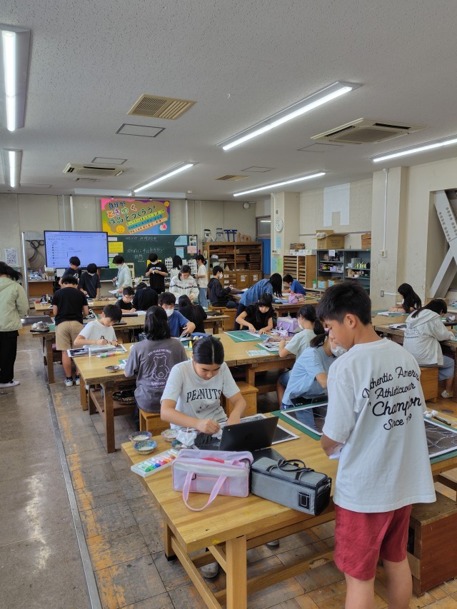 (資料を参考にして、お気に入りの富士山を、自分の感じる形や色で表現しよう)