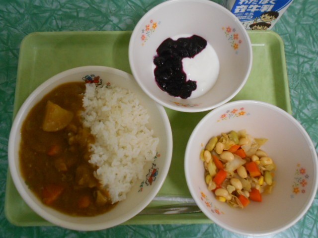 八王子市の恩方でとれたブルーベリーをソースにし、ヨーグルトにかけていただきました。