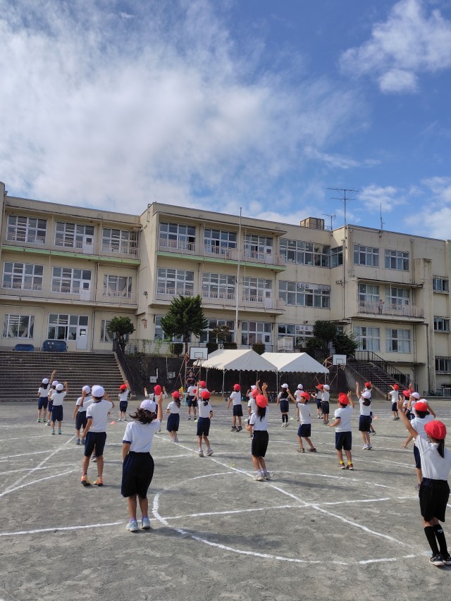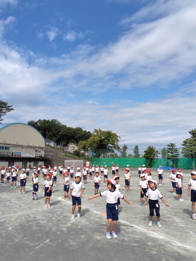 昨晩降った雨のおかげで校庭は土ぼこりも立たず、いい感じになっています。今朝は比較的涼しく感じます。2年生が元気に練習をはじめました。