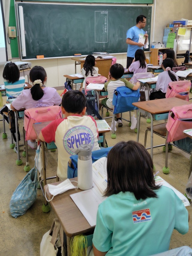 (3年生は「自分の気もちを手紙に」の学習をしています。実際に封筒のあて名書きも練習します)