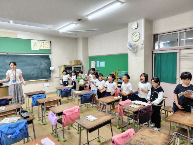 オープンスペースに元気な歌声が響いています。週末が本番の運動会で歌われる歌です。赤組と白組の掛け合いがありますので双方熱が入ります。