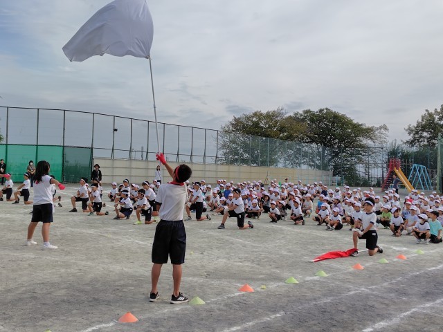 (かなり肌寒い朝でしたが、徐々に応援の熱気が校庭に広がります)