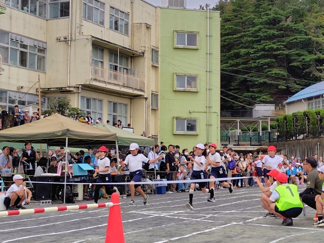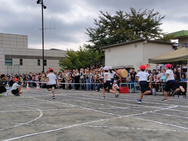 [4年生80m走] 得点競技のスタートです。土ぼこりもなく、トラックはいいコンディションです。