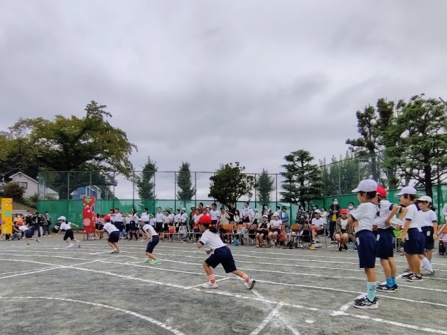 [2年生50m走] 徒競走が続きます。応援団もスタート地点で応援の声を張り上げています。