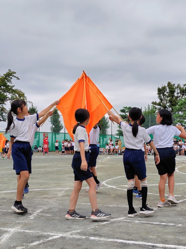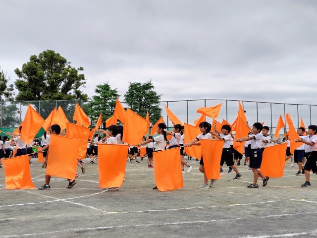 (気持ちを合わせて、いろいろな動きをフラッグで表現します)