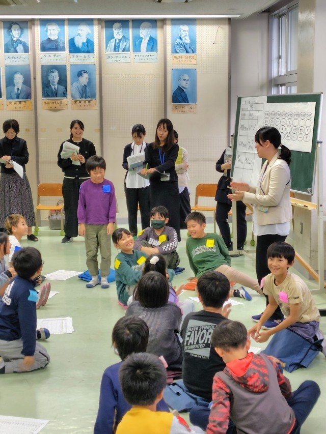 (グループごとにつくった言葉リズムを発表します。とても楽しい授業でした)