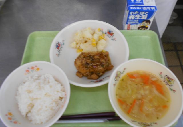 豆腐ハンバーグには旬のきのこをたくさんつかって和風のハンバーグにしました。