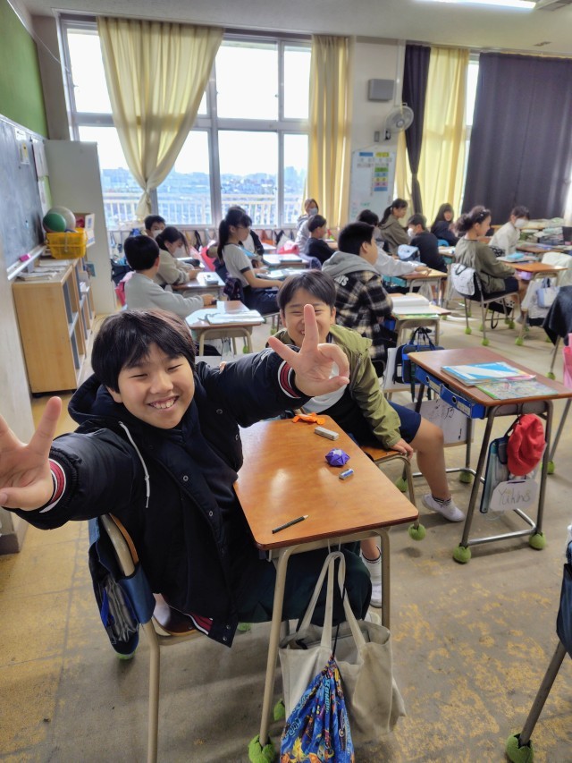 「It was green.」の学習が終わって、テストを始めるところでした。「校長先生、教えて〜!」と言われてしまいましたが、きっとみんなの方がよくわかるはずです。