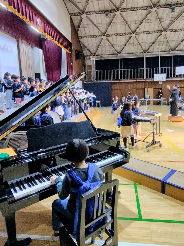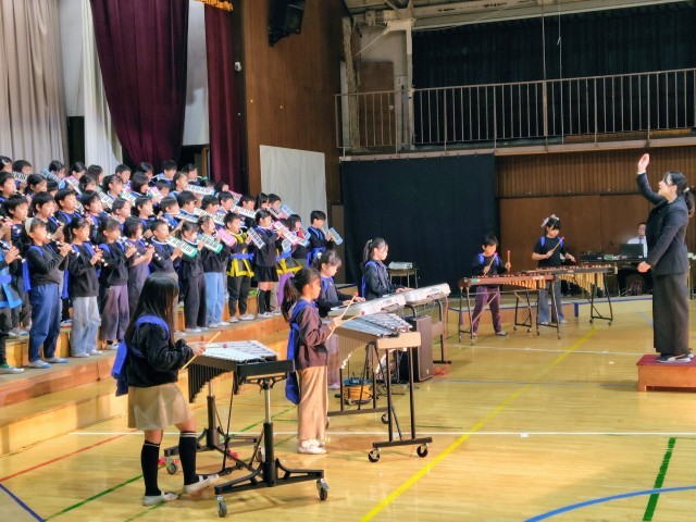 (合奏「島人ぬ宝」です。今年から取り組んだリコーダーをはじめ、いろいろな楽器を上手に演奏しました)
