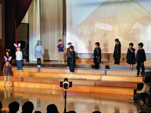 【2年生】後半の演劇の部が始まりました。2・4・6年生の順に演じていきます。2年生は入学してから初めての劇づくりにチャレンジしました。