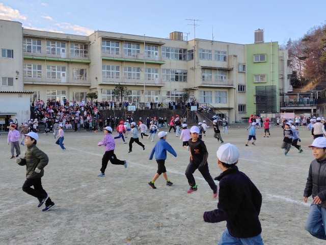 (鬼に捕まったら帽子を赤にして、鬼になります。走ってると体があったかくなります)